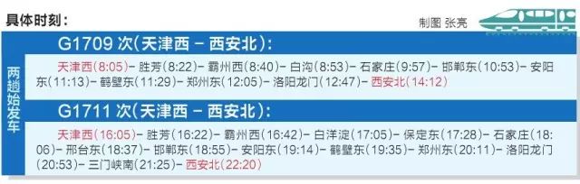 自9月中旬后,天津西站将每日加开两对往返于天津西至西安北间的高铁列车,其中各在早晚由天津西站出发的两趟高铁列车,最快仅需6小时零7分便可到达西安北站。此外,据记者了解到,除了以上两趟始发到西安的高铁列车,天津西站预计还会有3趟通到西安的高铁拉通列车,也就是通过津秦高铁,从东北方向开过来,途经天津西站,开往西安方向。据了解,这5趟赴西安的高铁列车,涵盖了全天的各个时间段,尤其是两趟始发车,从天津西站发车时间分别为8:05及16:05,时间安排上“早晚班”出行成为旅游首选。此外,天津西到西安北的高铁列车中途停站除了有石家庄、郑州东、安阳东、鹤壁东等之外,还有洛阳龙门站,这一站也是天津首开高铁的城市。