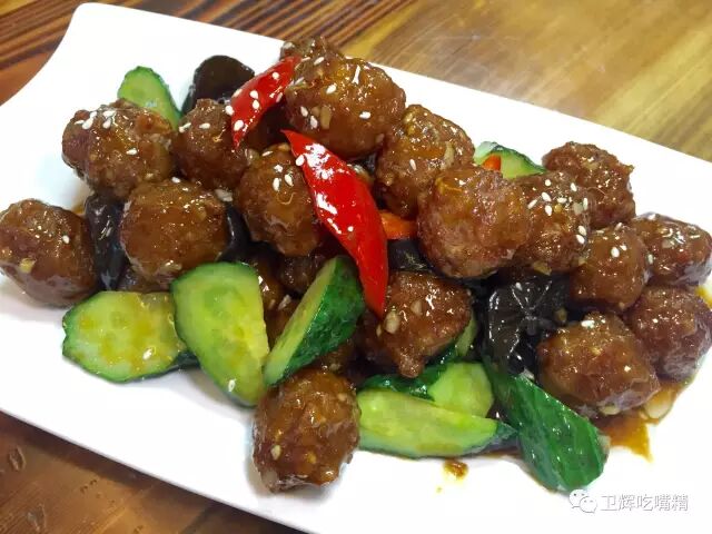 焦溜丸子:推荐!外焦里鲜嫩,肉香,小酸甜口感,不腻,后味儿有点咸香,加入红薯粉,丸子超焦,又不影响肉质!