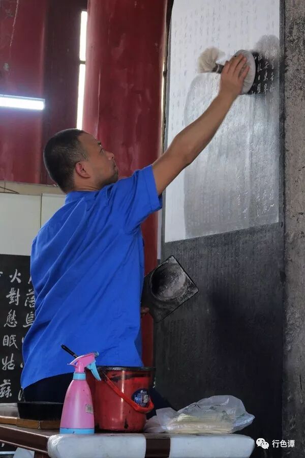 拓碑是一件看似简单实则很考验功力的活。曾听一个专家介绍,拓碑的技术直接影响拓片的美观,更影响碑刻的寿命。