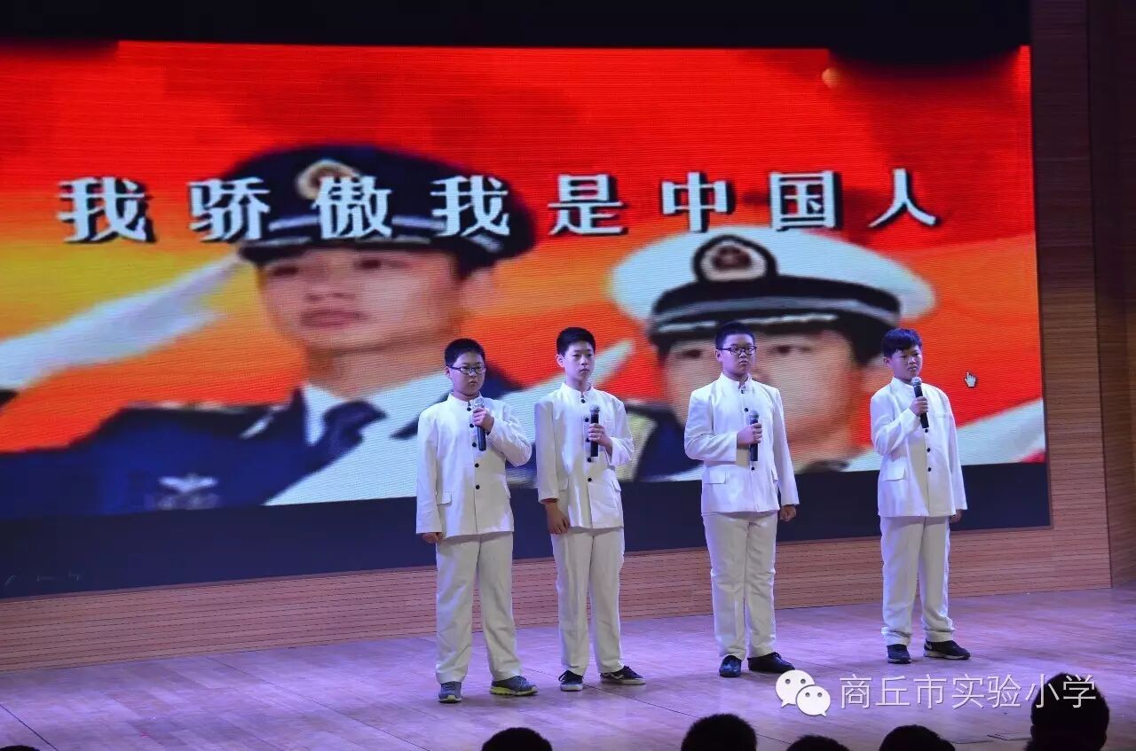 慷慨激昂的诗朗诵《我骄傲我是中国人》、《中华少年》、歌曲《映山红》以及情景剧《满江红》,将作者连同孩子们对祖国的一腔热忱毫无保留地展现了出来,他们或捶胸顿足感慨报国无门,或昂首挺胸站成一个大写的中国人。时而低吟,爱的深沉 ;时而高亢,爱得炽烈!