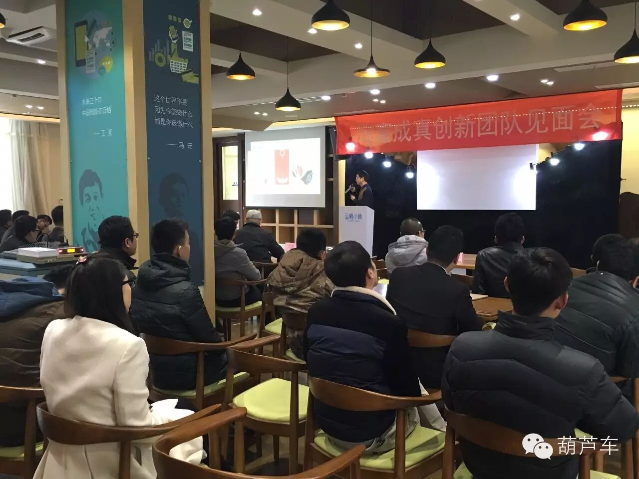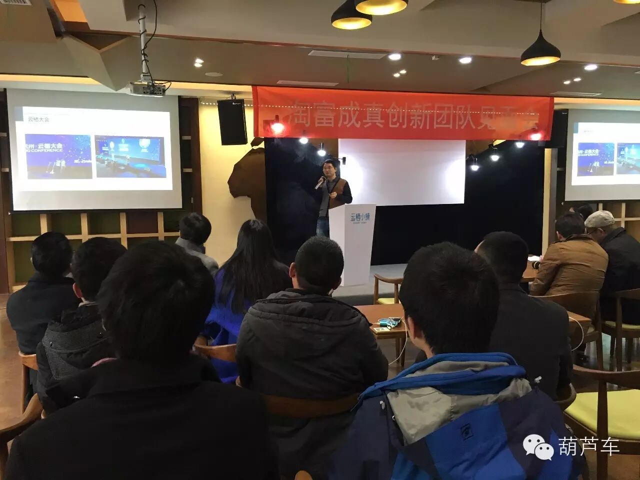 2月23日,葫芦车登陆云栖小镇,受邀参加“淘富成真”创新团队见面会。“淘富成真”是由阿里巴巴和富士康联合打造的为众多有想法的初创团队梦想成真的孵化器,将阿里云的云服务能力和富士康的工业制造能力,开放成为世界领先的基础设施平台,再加上各大投资机构和创新服务企业进驻,集产品设计、研发、制造、包装、云服务、销售及资金于一体,组成一个为制造企业攻克难题的大平台。通过各类资源的对接来解决各个企业现有问题,对症下药。