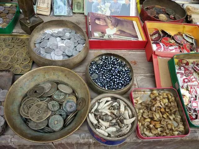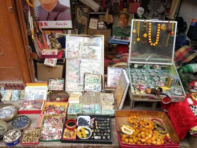 有些铺子则把老物件擦得干净发亮,好整齐地摆放在玻璃架子上,一架子气派。