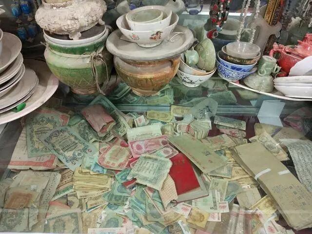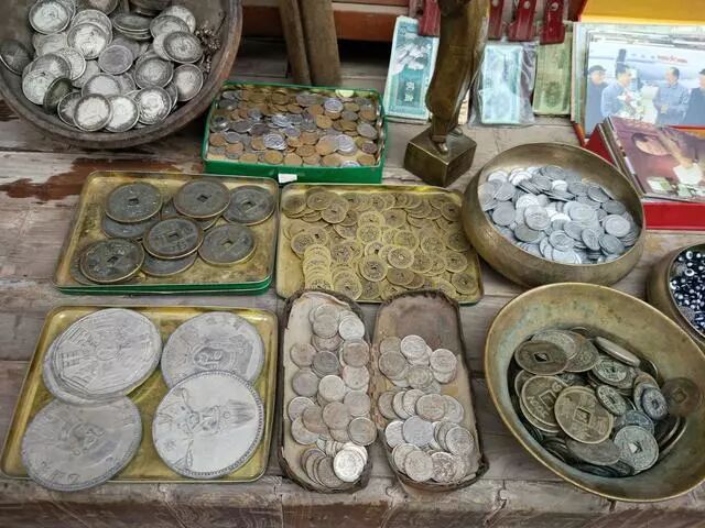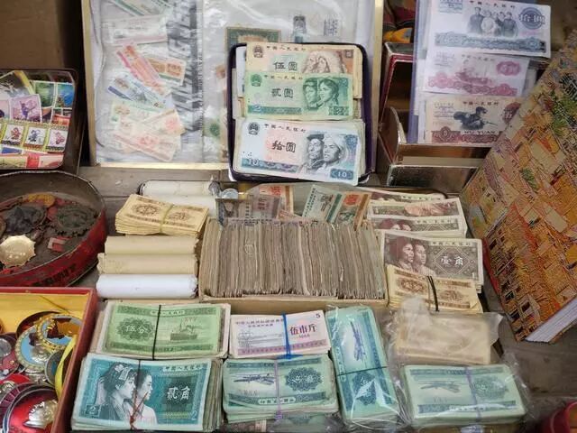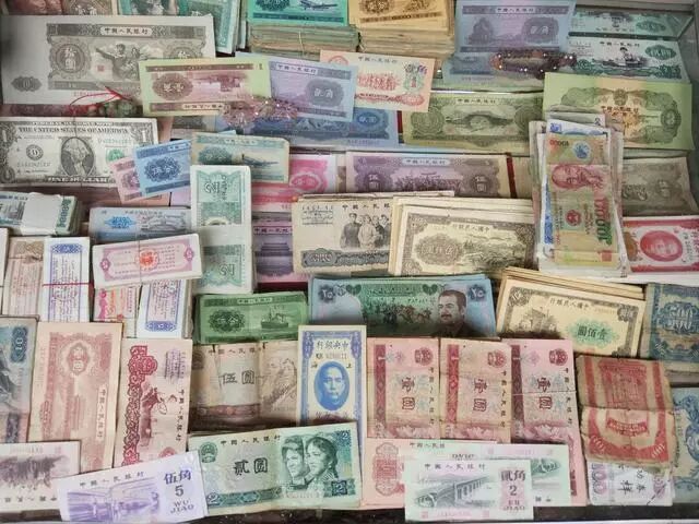 我从朋友那儿打听到了1953年的新货币最值钱,某些币值是非常值钱的,但这些摊子上基本没有找到。这些货币现在虽然不常见,但人们手里确实也不少,因此值不了多少钱粮。
