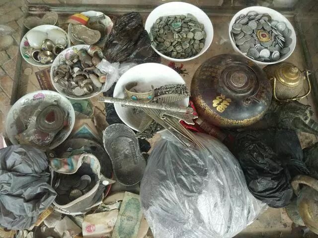 我把屋内的灯打开,映入眼帘的就是这番景象了。从器皿、陶瓷、茶壶、地摊都是过去的,不知道年代,堆满了灰尘。
