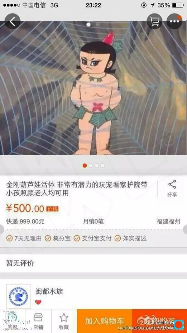 这两天微博上热传一事,万能的淘宝上有卖“野生活体金刚葫芦娃”!
