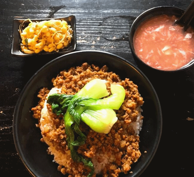 各类咸饭摆盘很精致,浇头各有特色,味道很足,米饭粒粒分明越嚼越香。还配有西红柿蛋汤和一道小菜,味道也绝不糊弄,每一道餐品都可以尝出老板的用心。
