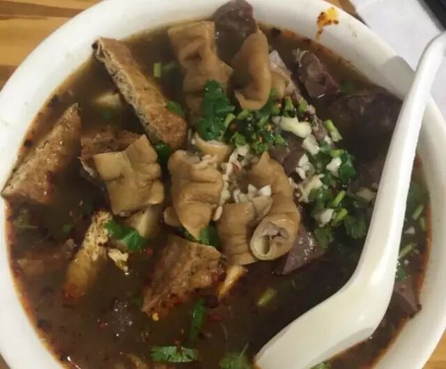 真的是满满一大碗,用料超级足,牛肚大肠豆腐牛肺,汤汁味道浓郁,再加上一块块火烧浸泡在卤汁里,味道鲜美!
