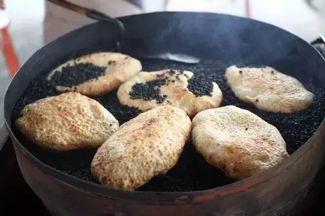 石子馍有明显的古代石烹遗风,做法古老而新奇,口感酥、脆、咸、香,有包馅的,有和糖的,还有掺豆面的,购买时可根据口味的喜好来挑选。市面上很多种类的石头饼是工业流水线上生产出来的,而真正的石头饼是依靠传统手工艺精制而成。在回民街就可以买到现做现卖的石子馍。