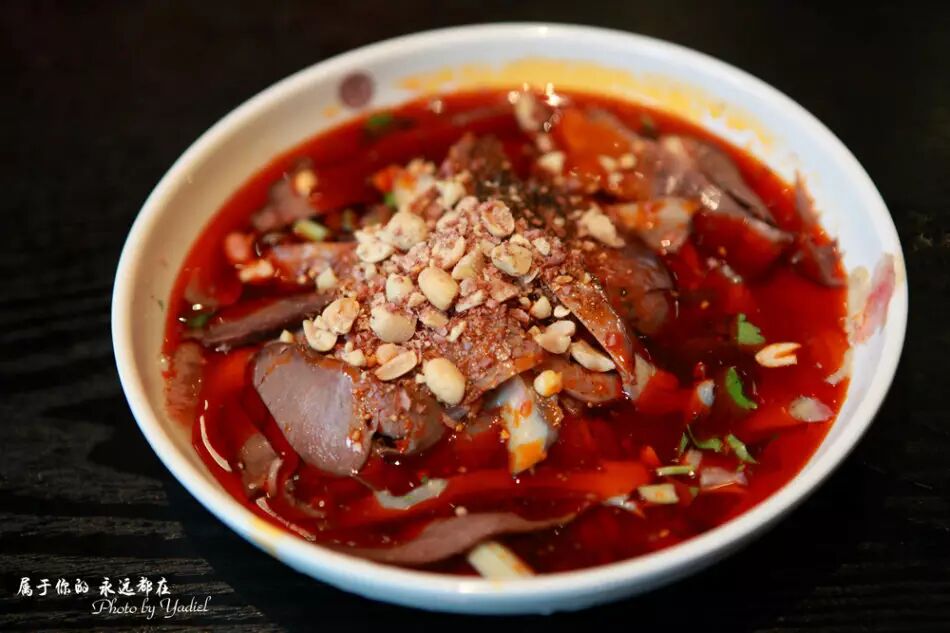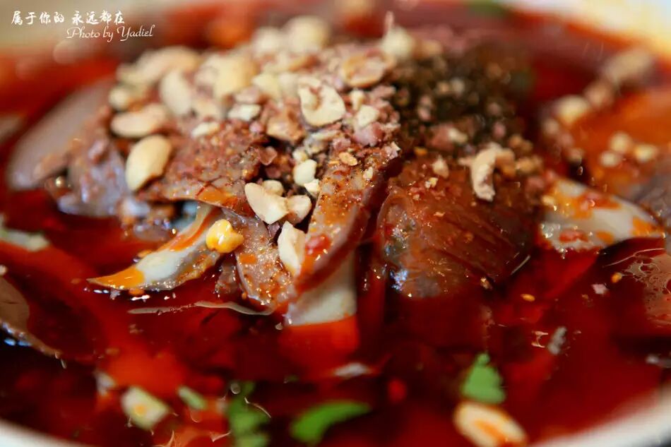 夫妻肺片,整个四川人人皆知。色泽红亮.质地软嫩,口味麻辣浓香。观之青红碧绿,津河暗涌。一大青瓷盘新拌的肺片端上桌,红油重彩,颜色透亮;把箸入口中,便觉麻辣鲜香、软糯爽滑,脆筋柔糜、细嫩化渣。