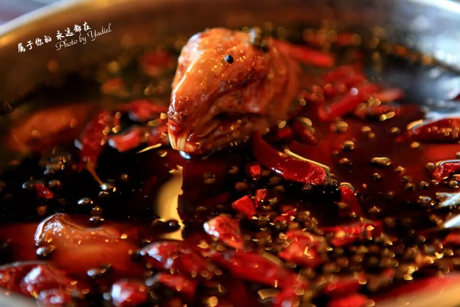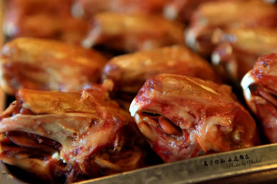 在四川话里,把“吃兔头”叫成是“啃兔头”。在成都,吃兔头已经成为了一种习惯。当初的兔头就像当初的夫妻肺片一样,是边角废料,常常用小锅煮着,沿街叫卖。兔头上的肉比兔子其他部位的肉都要细嫩,而五香兔头,味道鲜香,色泽红润,是一种角色美味。 推荐店面:(1)双流老妈兔头,地址:成都市双流县藏卫路82号(双流县交通局对面)。 (2)乔一乔怪味兔头,地址:成都市双流县东升镇白依下街194号(白依小区对面)。