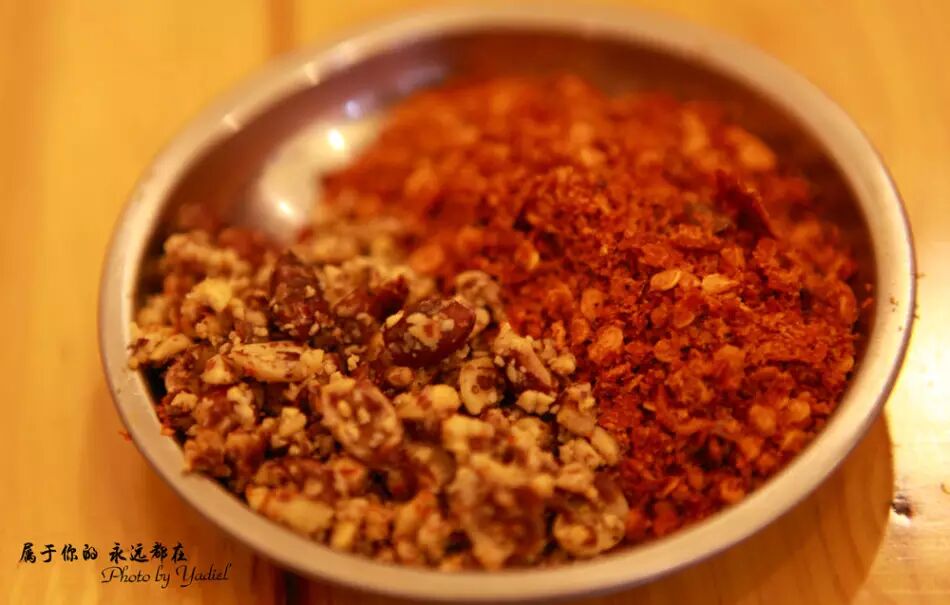 他们家独特的秘制作料碟,必须是川菜的风格,麻辣入味。