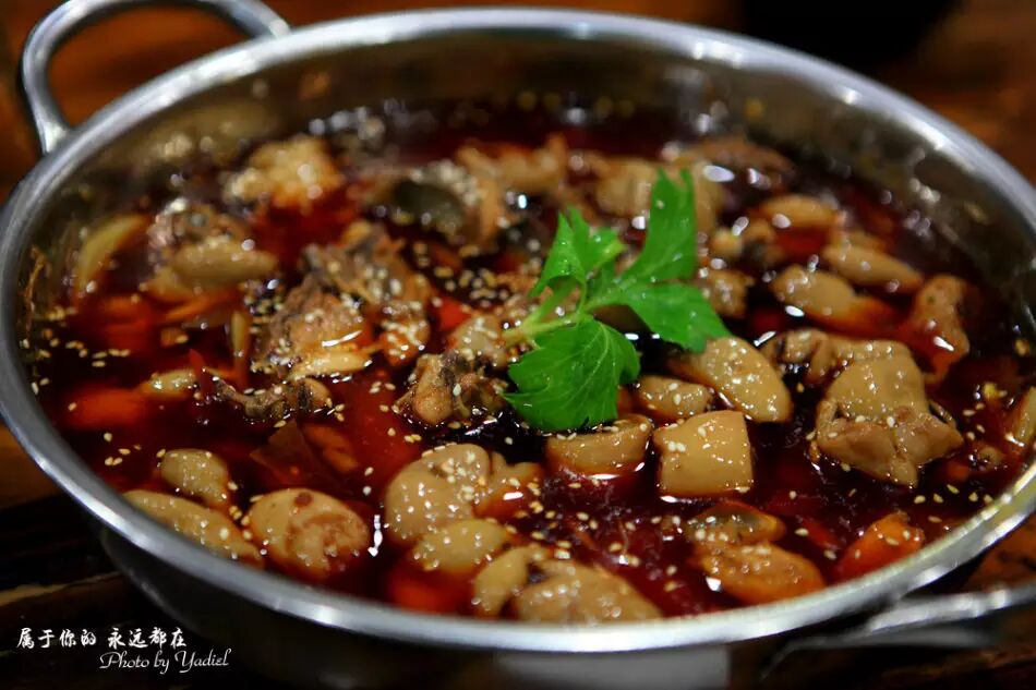 芋儿鸡,可谓是四川美食里的另一道色香味俱全的美食。将精选的鸡肉、芋头放在一起炖,配上花椒、葱、生姜等作料,当然,最重要的是少不红油。鸡肉滑润可口,芋头酥而不烂,入口即化的感觉实在让人难以忘记。推荐店面:绝城芋儿鸡,地址:成都市锦江区红星路四段(老码头火锅、孔亮火锅旁边的小巷子里50米)。需要提醒的是,这家店不是很好找,但生意绝对是爆火啊,每天11点、17点开始,排队的人那叫一个多!