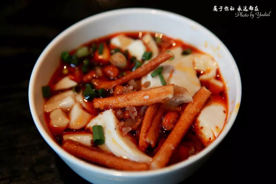 据说是因为“吃的人都会被辣得流下眼泪而得名”。佐料“色泽鲜亮”,凉粉“爽口滑嫩”,小米椒威力巨大,真是让人“一把眼泪一把鼻涕”,“越吃越伤心”。一定要再来碗“甜甜”的开心冰粉“才能化解”。推荐店面:(1)广东会馆,坐在“古色古香”的院子里,看服务员“用竹簸箕”端来凉粉,很有川西风情。地址:成都市龙泉驿区洛带镇。(2)客家伤心凉粉(暑袜南街店),地址:成都市锦江区暑袜南街34号(太平洋影城对面)