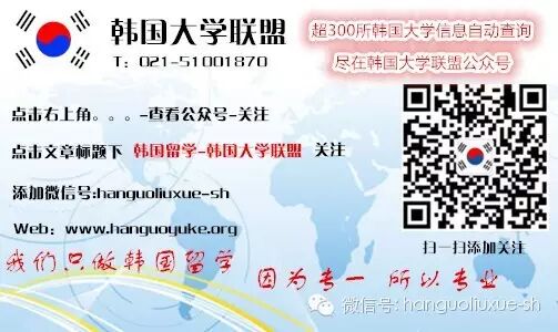 查询韩国大学信息尽在韩国大学联盟微信公众号,输入大学名称即可自动获得回复