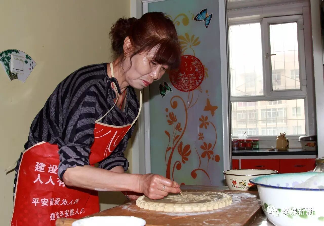3.擀面、雕花。光滑的面团,擀而成饼;以梳子、锥子等为雕花工具,使花鸟鱼兽等浮于面饼之上。
