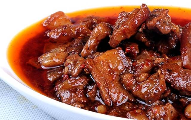 材料齐全了,臊子如何做成呢?这个也有讲究,岐山人加工臊子不说“炒”,不说“烧”,叫作“燣”(lan)。因为用的是文火。文火讲究的是耐性、把握的是火候,加工时间长储存时间也长。