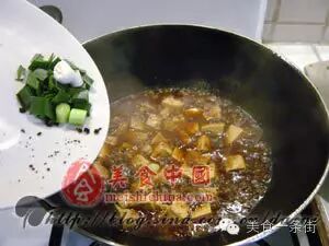 8、加酱油、青蒜段、糖,用盐调味(如果觉得够咸就不用放盐)