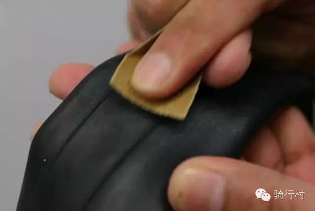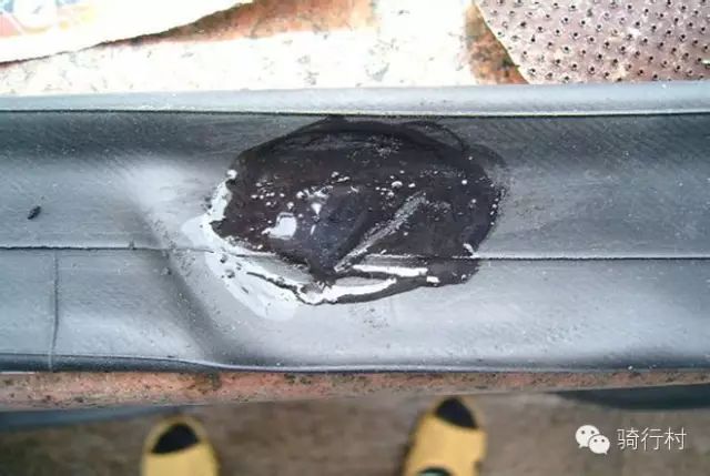 【5】涂上胶水补坡口:胶水不要太多,涂抹均匀。涂上胶后稍微干一下,须等其表面风乾,看起来是灰濛濛的、而不是水亮水亮的,才能贴上补胎片。