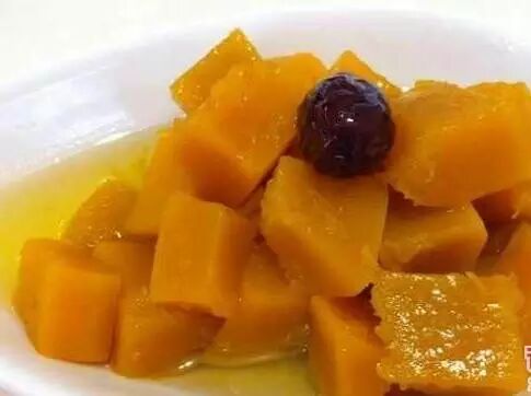 用陕北优质八棱南瓜,削皮去籽,平剖两半,再顺天然瓜沟切为若干小瓣,拼复完整,入锅蒸熟后,浇以糖汁。口感绵软,香甜怡人。南瓜富含维生素A、C、钴、锌等营养元素,对糖尿病及肥胖症有独特疗效。