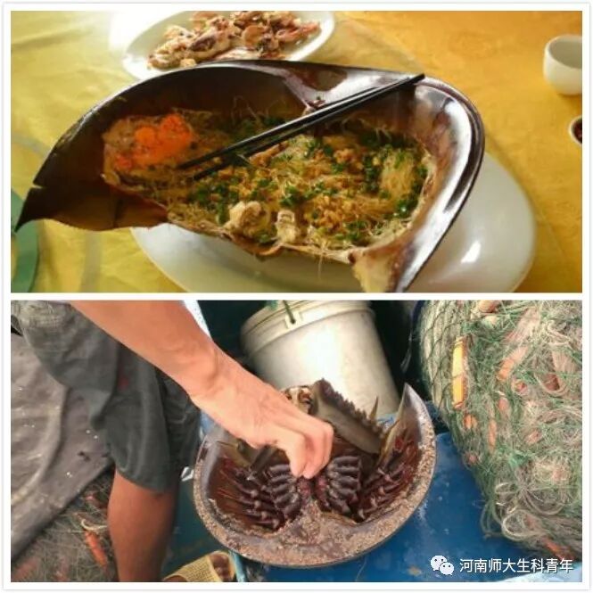 鲎的肉、卵等还可以食用。特别值得一提的是,色泽和硬度似坦克皮般的鲎壳成就了一门独树一帜的艺术——鲎壳画。这种在地球上生活了几亿年的生物,因为人类的剥削已经大量减少。它们的医学价值正在逐步被新产品代替,但是这并不意味着解脱。如果实验室不再需要它们,渔民又会将它们用作捕捉蛾螺的诱饵,它们的悲惨命运似乎没有尽头。