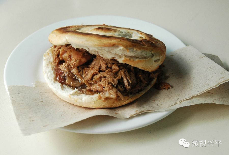 三秦套餐之一,卤肉咸淡适口,热乎乎的加入烙的金黄的白吉饼中,纯瘦肉夹馍,肥瘦肉夹馍,肥皮夹馍……