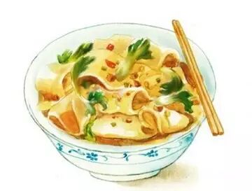 【biangbiang面】biang字其实在正规字典里是查不到的,辞海里也没有,外地人根本就不认识。这种宽度跟裤袋差不多的面,一碗就只有一根,相当霸气。
