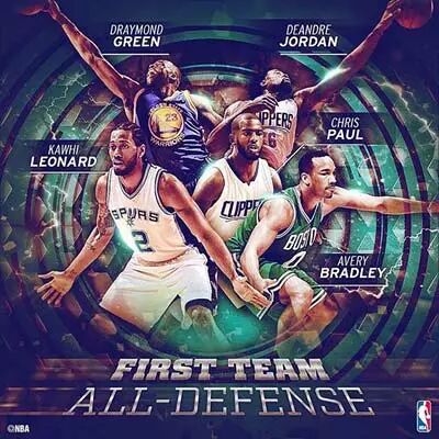 北京时间5月26日,据NBA官网报道,联盟今天公布了2015-16赛季的最佳防守阵容,两届最佳防守球员考瓦伊-莱昂纳德全票入选,领衔最佳防守阵容一阵。最佳防守阵容一阵:考瓦伊-莱昂纳德(马刺,260分)、德雷蒙德-格林(勇士,251分)、德安德鲁-乔丹(快船,137分)、埃弗里-布拉德利(凯尔特人,149分)和克里斯-保罗(快船,148分)。