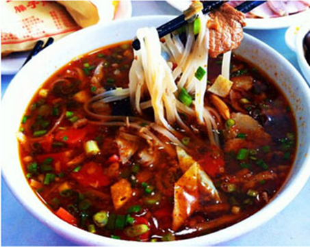 易筋经能改变筋骨,通过修炼丹田真气打通全身经络的内功方绝学。令狐冲身中几股真气,只有易筋经能解,方证大师将此经传于令狐冲。而岐山臊子面颜色鲜艳,气味浓香,味道好吃。面条是薄、筋、光。汤味是 煎、稀、汪,味道是酸、辣、香。恰似易筋经,咥下一碗,神清气爽,仿佛全身筋络尽通。