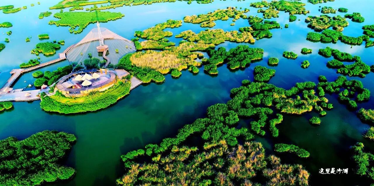 沙湖南面是一片面积3万亩的沙漠,它和这万亩湖水似乎是天造地设的伴侣,一处融江南秀色与塞外壮景于一体的“塞上明珠”。