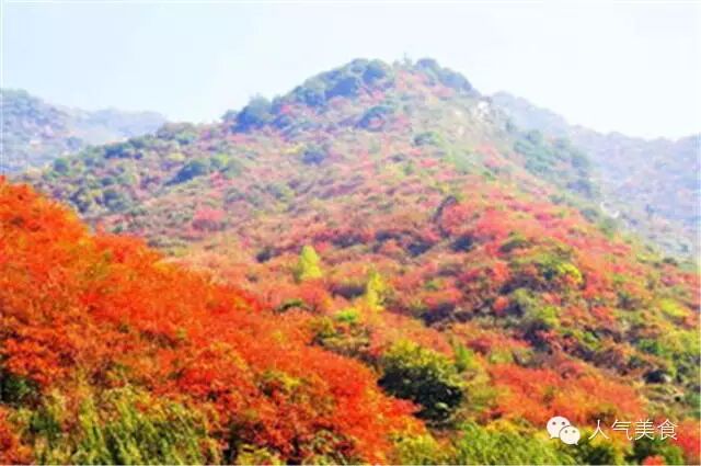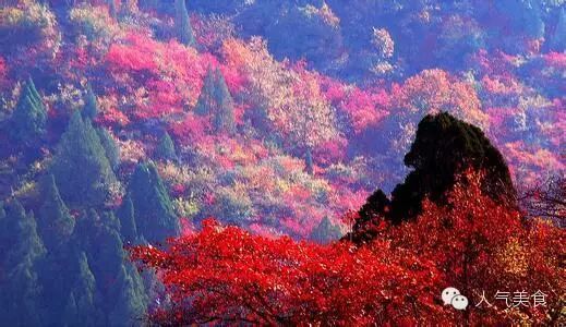 北京有座香山,陕西韩城也有座香山。每年秋季,漫山遍野的红叶红得像火焰一般,霜后又呈深紫红色,五彩多变。要观赏红叶最好选择一个霜降时节上山,此时方圆数千万亩山坡或沟地上枫树黄栌红叶红艳似火,远远望去,会误以为是飘落的花瓣,走近看才辨清是椭圆的树叶。