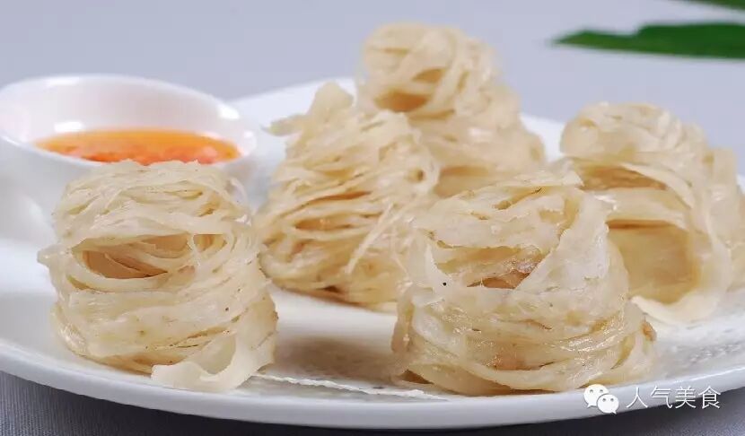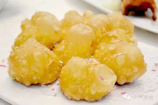 泡泡油糕是西安十大特色小吃之一,其渊源可上溯至唐代韦巨源的烧尾宴名点“见风消”油洁饼。它用烫面包着黄桂、白糖、玫瑰、桃仁等馅料经油炸而成,因起糕面有隆起的松泡,故此得名。炸好后,糕面出现薄如蝉翼、白如霜雪的一层泡,犹如繁花盛开,似乎见风即消,人口即化,松软绵润,芬芳醇香。