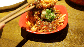 谁说酥肉是火锅的标配,现在来瓜瓜串一样吃得到。酥肉里藏有“暗器”花椒,黄灿灿的现炸酥肉,吃一口香脆一直在嘴尖萦绕。