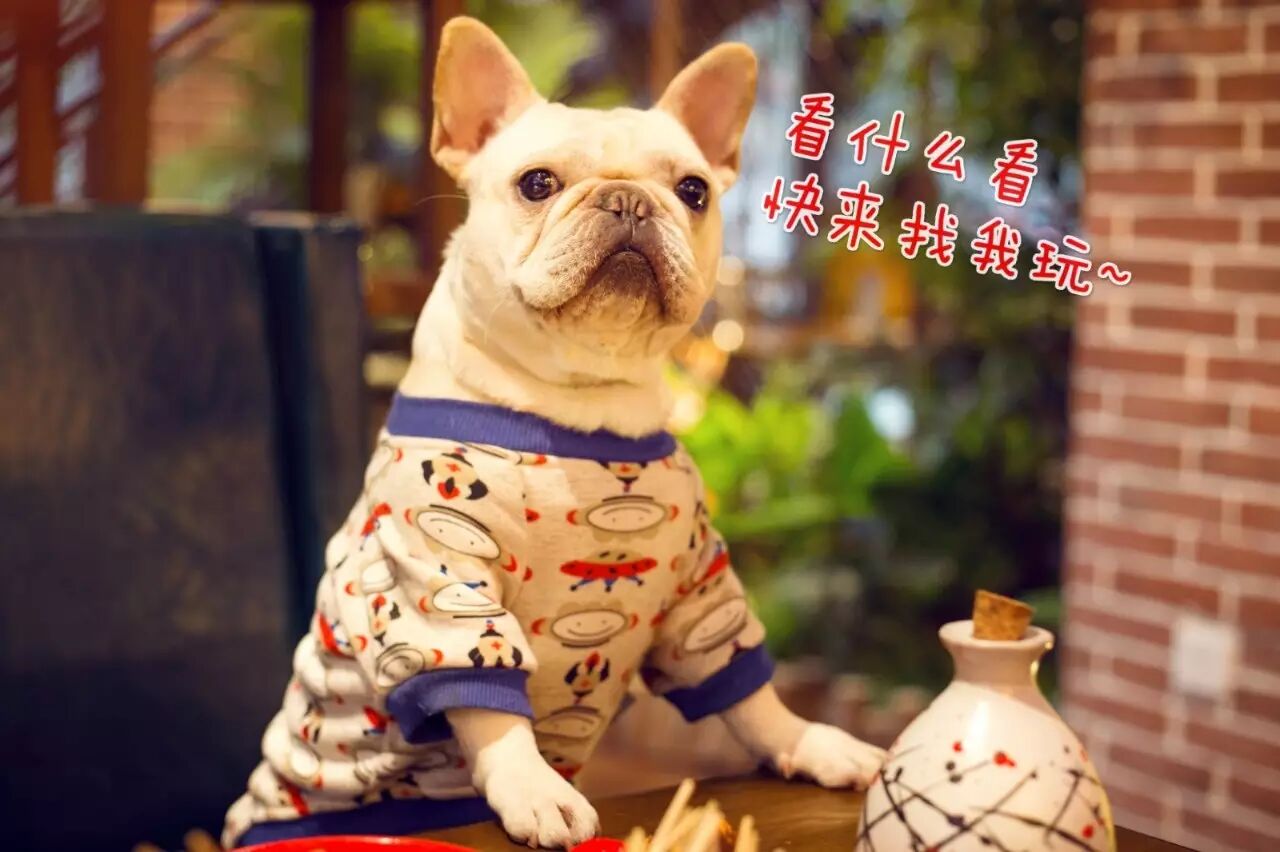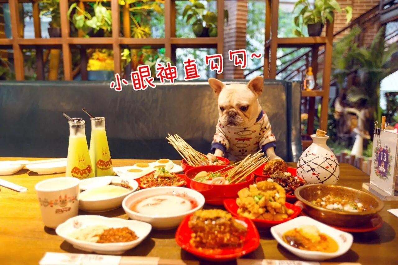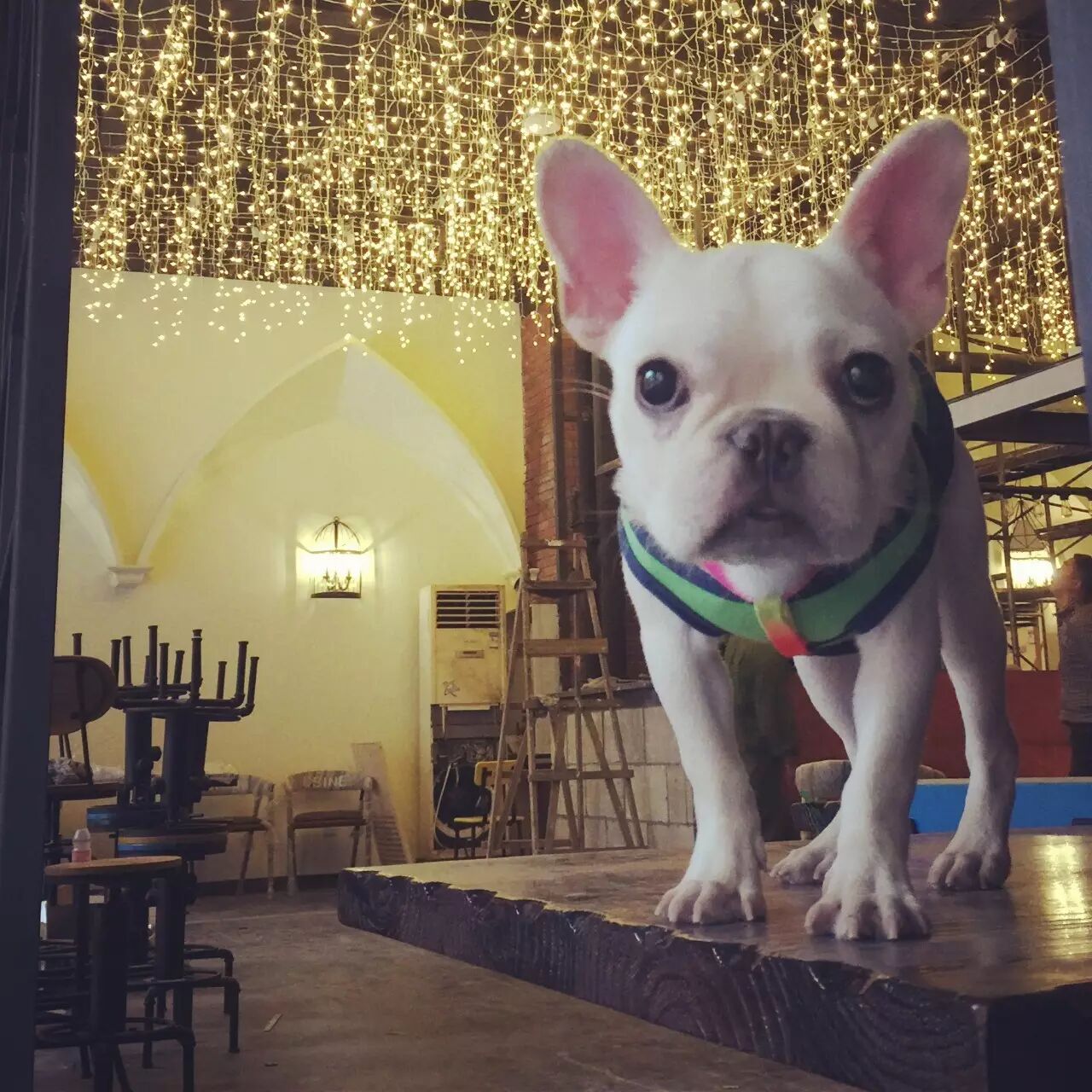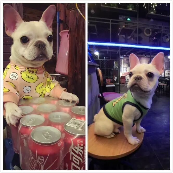 由于经常跟着主人在店里,渐渐地,很多熟客不仅认识了瓜瓜串,也认识了这只可爱的小法斗——“雪碧”。