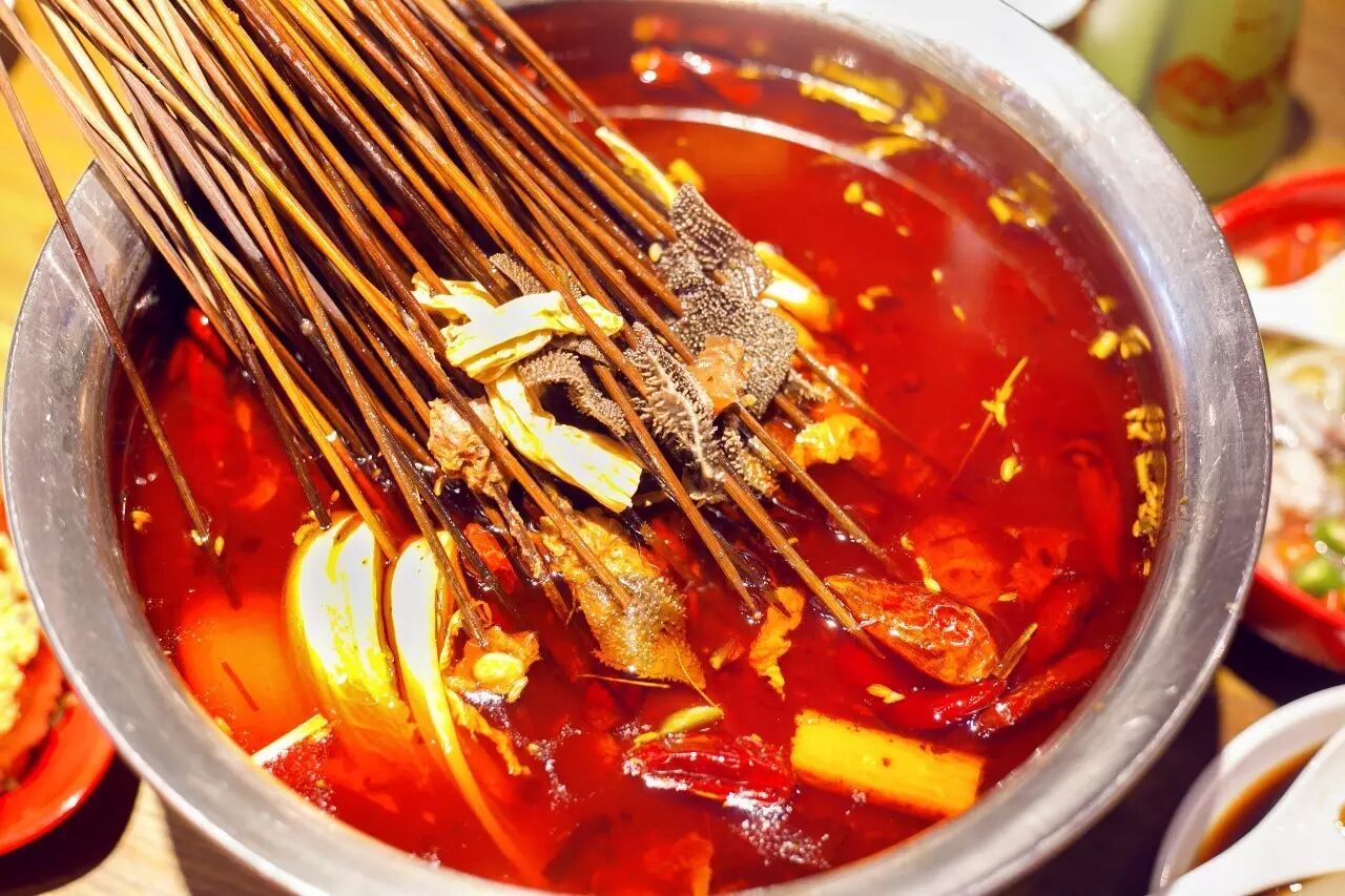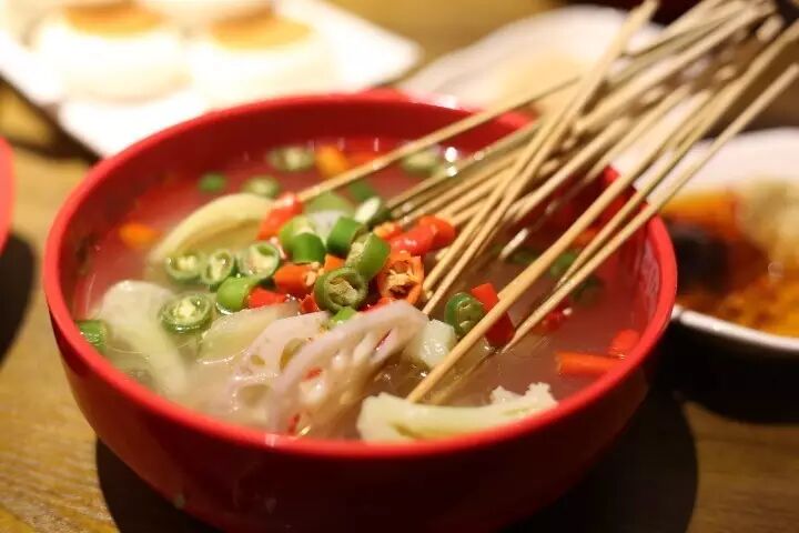 在满是花椒、辣椒的红油汤底中浸过的串串儿,光是看着就让人食指大动。夹一签子入口,鲜香麻辣一步到位!