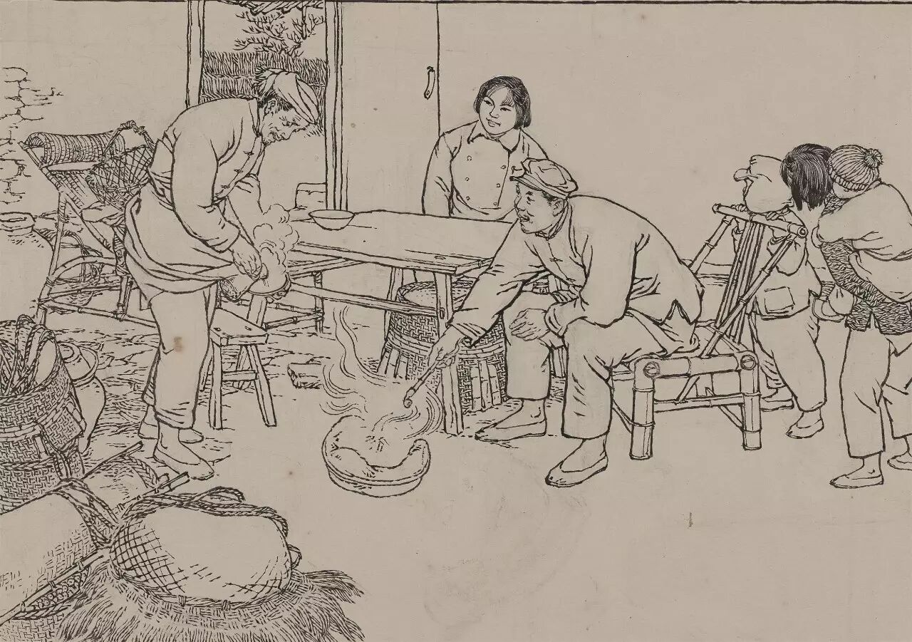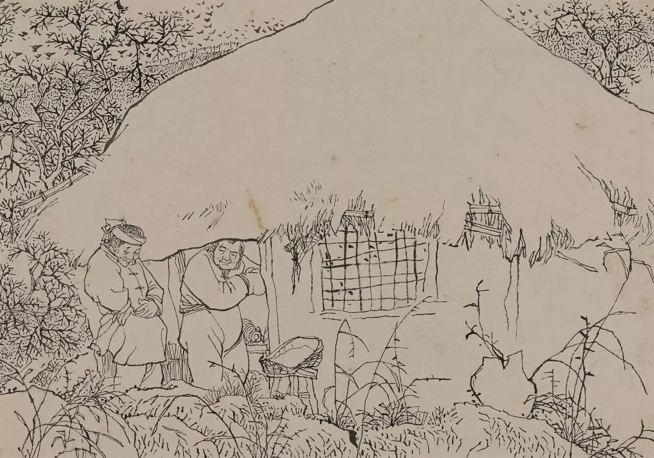 画《朝阳沟》时,他不再追求对生活情景的逼真再现,而是有意识地带入了自己的审美趣味。