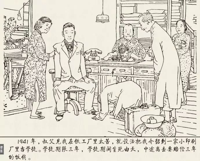 十几岁,到上海当学徒,冬天睡在钳桌下的水泥地上,冻得两腿抽筋;