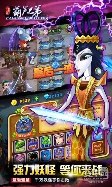 官方正版!动画剧情经典再现!全球最火爆的策略塔防游戏《葫芦兄弟》重磅来袭!快去集齐所有神灵,帮助葫芦娃一同铲除妖魔!
