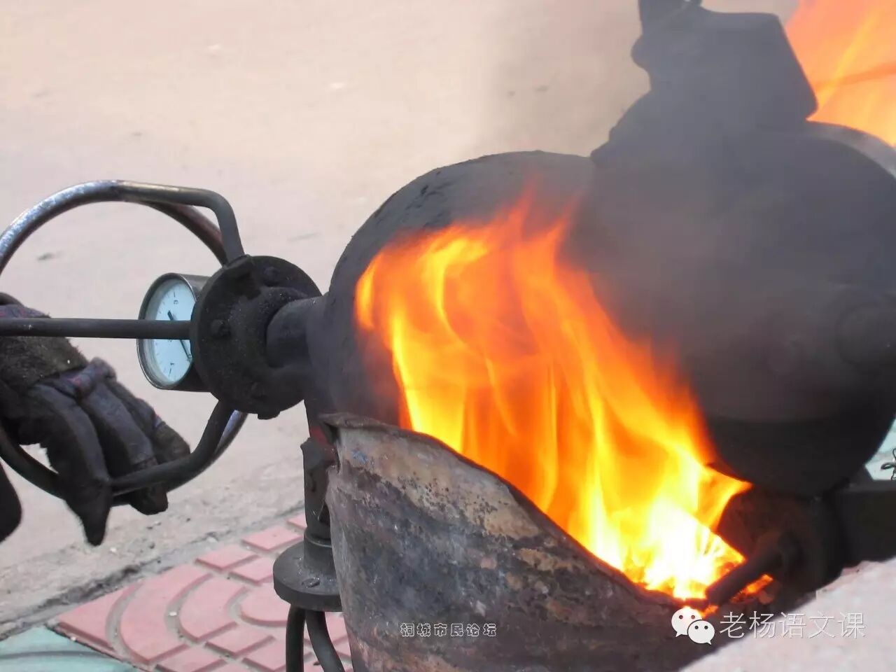 风箱像是一只大黄狗趴在地上,不停地喘着粗气,炉里的火苗渐渐烧起,炉子在老人的转动下发出哗啦哗啦地响声,我知道那是豆豆在炉里闹腾呢。只见他不时地通一通炉里的煤又不停地转动炉子。渐渐地,炉子里的豆豆都消停了,听不见任何响声了。老人转动炉子的手放满了速度,时而停下来看看铁环中间的气压表。看来是没到火候,继续拉风箱,转炉子......